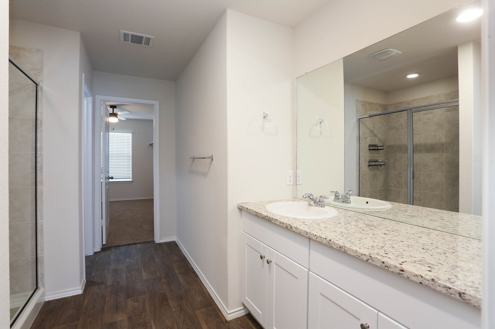 Welcome to Creekside Farms, a stunning residence nestled in the heart of New Braunfels, TX. This home boasts four spacious bedrooms and 2.5 bathrooms, including a large master suite with an extra room and a generously sized master bath. The open floor plan invites you into a large kitchen, complete with granite countertops, offering ample space for culinary creativity. The property is centrally located, providing easy access to local amenities. Despite its central location, the home offers a sense of seclusion with a private, fenced backyard. The covered patio is perfect for outdoor entertaining or simply enjoying a peaceful moment. The house is in excellent condition, appearing as good as new. Experience the perfect blend of comfort, convenience, and luxury at Creekside Farms. For more information call Isaac @ 830-388-1882